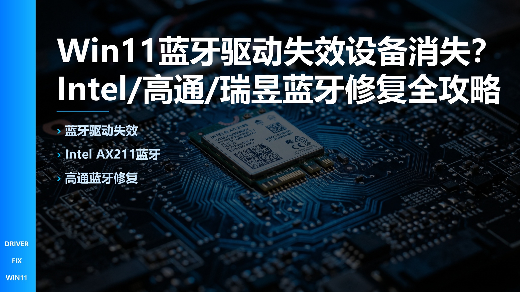 调查数据显示,Win11 24H2更新后约14%的笔记本用户遭遇蓝牙功能异常。本文针对Intel AX211/AX210、高通WCN685x、瑞昱RTL8852CE三种主流蓝牙芯片,分别提供专用驱动获取方法、电源管理优化和2.4GHz干扰处理方案,并附通用修复步骤和完整Q&A。